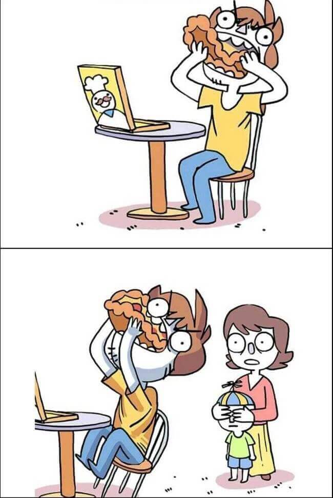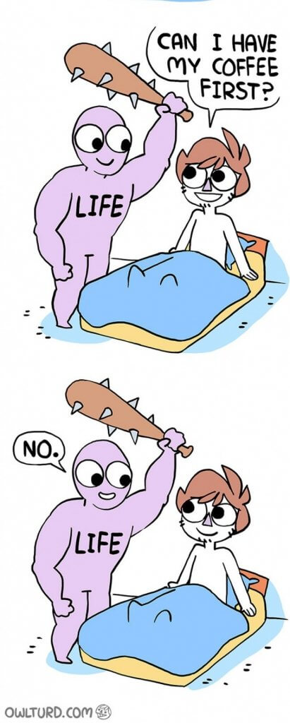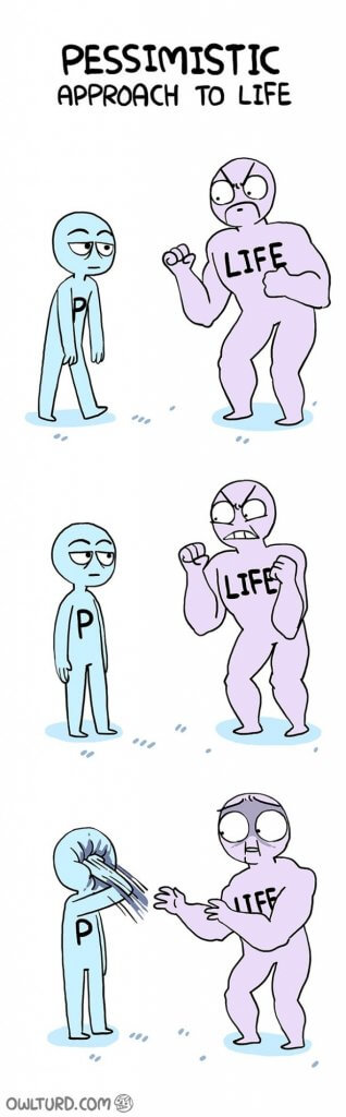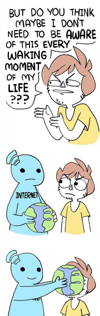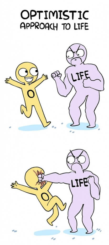 Artistul Shenanigansen, ilustreaza intr-un mod briliant luptele noastre de zi cu zi, din viata de adult. Ideea este ca pana si cele mai negre probleme isi gasesc rezolvarea, daca schimbi perspectiva din care le privesti. O sa redau aici ilustratiile artistului, care reusesc sa transmita mesajul mai mult decat ar face de 1000 de cuvinte.