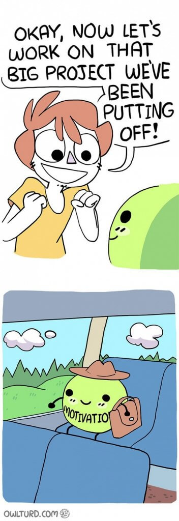 Chiar daca faci ceva ce nu iti place, si simti din toata inima ca iti vine sa renunti si sa fugi, motiveaza-te facand ceva ce iti face placere, insa doar dupa ce ai terminat task-ul neplacut. Nimic nu se compara cu sentimentul de eliberare pe care il ai atunci cand termini ceva ce de prea multa vreme ai amanat.