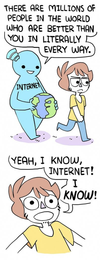 Nu te mai compara cu ceilalti, si invata sa te iubesti mai mult. Fiecare este unic in felul sau, si tu la fel. Ar trebui sa incerci sa iti fructifici la maxim abilitatile, altfel nu  o sa fi niciodata satisfacut.