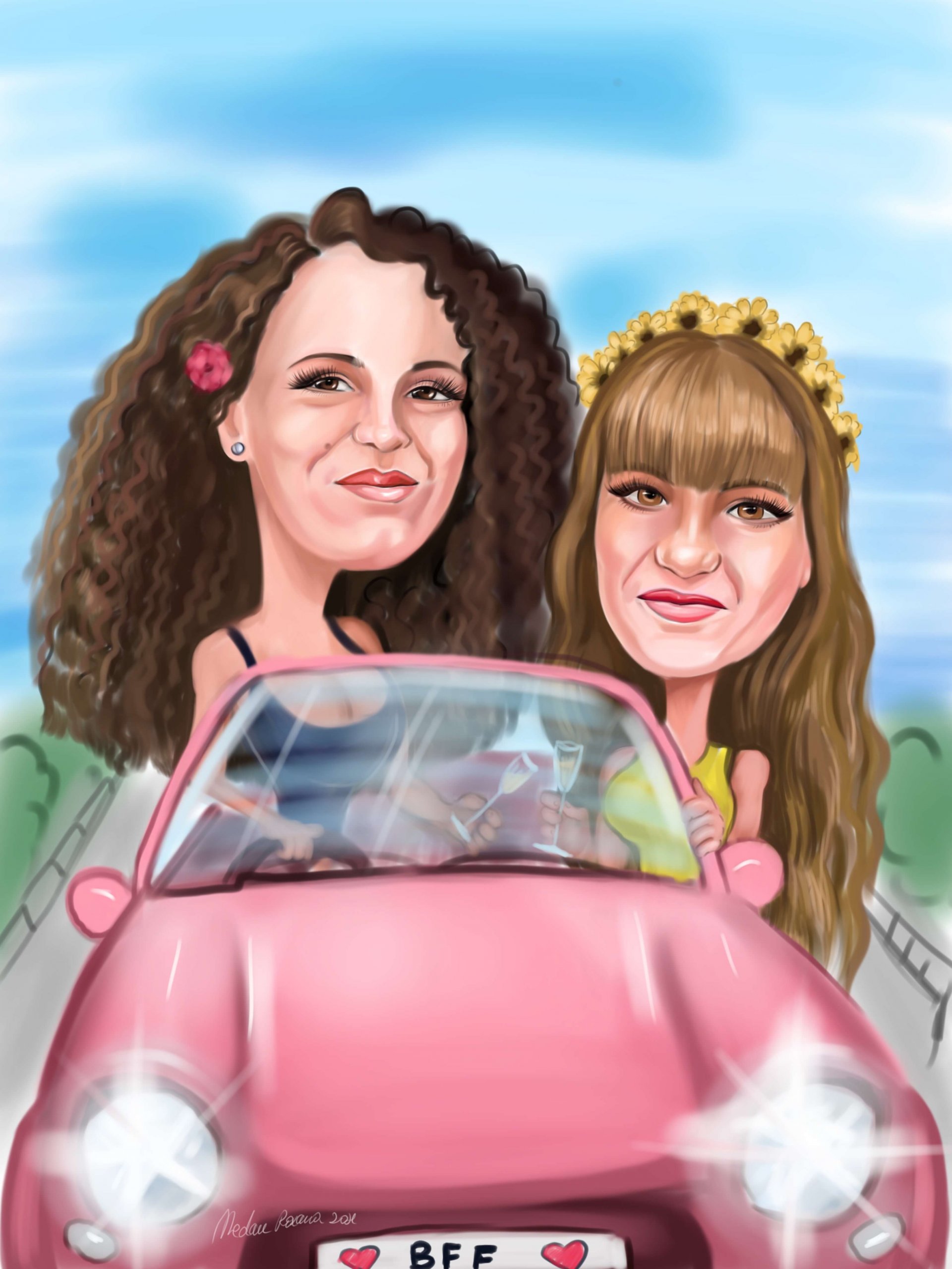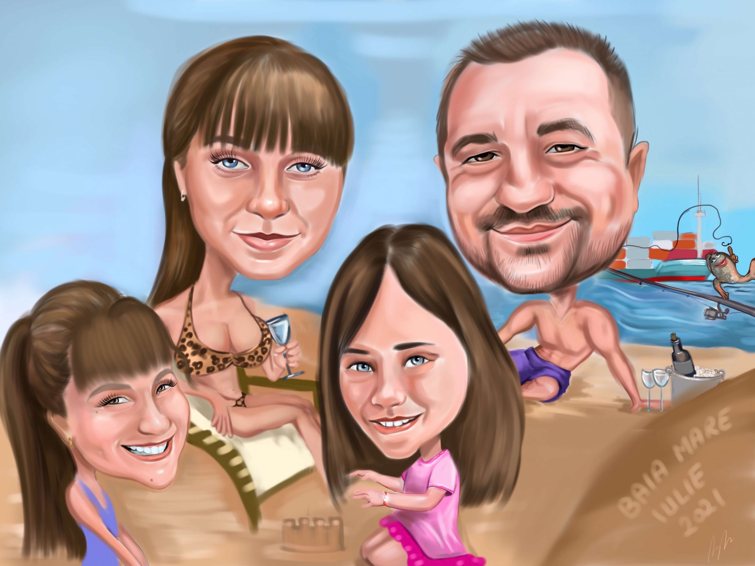 Cu o experienta de peste 3 ani in acest domeniu, va ofer caricaturi de calitate si originale, exclusiv in ton cu dispozitia d-voastra. Din experienta mea ca si artist de strada prin orase precum Barcelona, Santa Cruz de Tenerife,Lisabona si Roma va aduc voua caricaturi amuzante ca sa va imbunatatesc starea de spirit. Acum este mult mai accesibil pentru tine, si poti sa comanzi oricand o caricatura digitala sau una executata in tehnica traditionala, accesand sectiunea https://roxanamedan.ro/contact/ sau prin e-mail contact@roxanamedan.ro ; Timpul de executie este de maxim 2 zile, si o poti primi prin e-mail sau/si curier indiferent daca alegi varianta digitala sau varianta traditionala. Consider caricatura ca fiind un act de curaj, un act de “rebeliune” fata de propriul ego, un act prin care demonstrezi ca trupul si chipul sunt doar un “ambalaj”, si ca nu te temi sa le supui privirilor cercetatoare ale artistului. Consider un act de curaj faptul ca te asezi in fata unui artist, si ii dai voie sa iti exagereze trasaturile chipului fara teama de a fi “prea exagerate” trasaturile tale. Am facut caricaturi oamenilor din diverse culturi, incepand cu thailandezi pana la chinezi sau afro americani. Fiecare chip are trasaturi specifice si are ceva frumos ce merita exagerat si scos in evidenta. Sunt tot trasaturile noastre insa scoase mult mai mult in evidenta. Este ca si cum ne-am uita la nasul tau printr-o lupa, sau un alt obiect cu capacitate de marire. Asadar nu iti fie teama de provocari, arata ca ai curaj si lasa-te caricaturizat, iar noi o sa facem o caricatura…pe masura personalitatii tale !