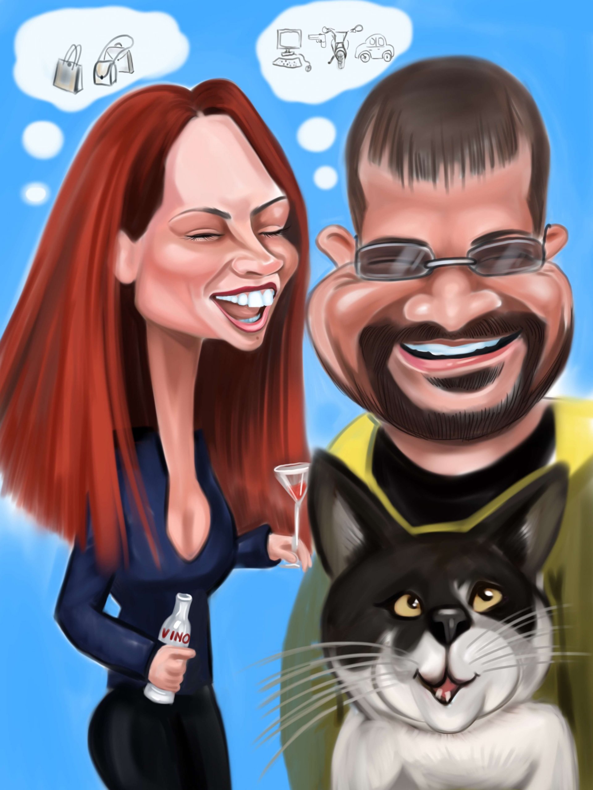 Caricaturi de Maramures ofera o paleta larga de caricaturi si portrete, caricaturi serioase sau amuzante, caricaturi mari sau mici, alb negru sau colorate, cu multe sau cu putine personaje, cu sau fara animalutele tale de companie. Aici gasesti caricaturi pentru toate gusturile, si cu siguranta una este pe gustul tau. Indrazneste si tu, si haide sa ne amuzam impreuna de efectul pe care il aduce o caricatura asupra ta.
